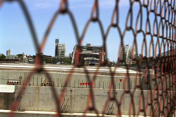 丸子さんが住んでいる田園調布の方角を、新丸子町の方から丸子橋越しに見た所です。 丸子さんの名前の由来となったと思われます、「丸子」と言う地名は、東急東横線武蔵小杉から新丸子の駅の付近に広がっておりまして。 ちなみに、丸子橋はこのとき工事中で、新しいアーチ式の橋に生まれ変わろうとしておりました。 上の写真が、田園調布方向をみた写真です。