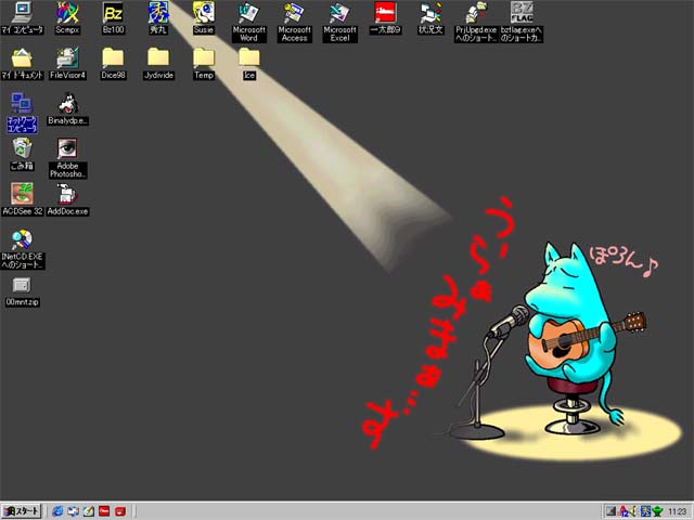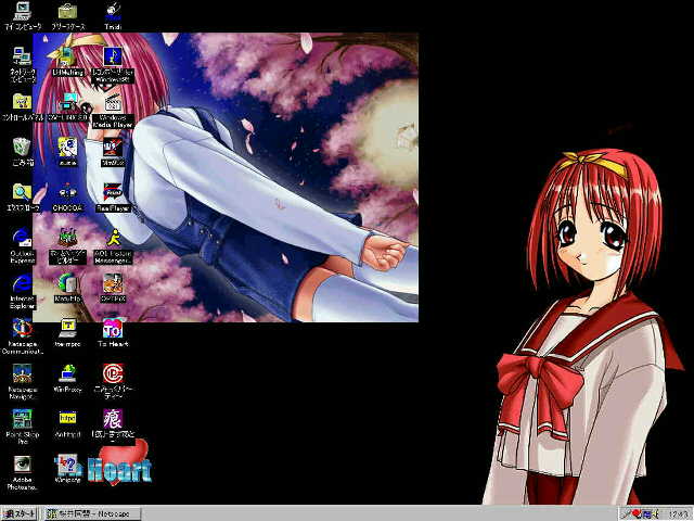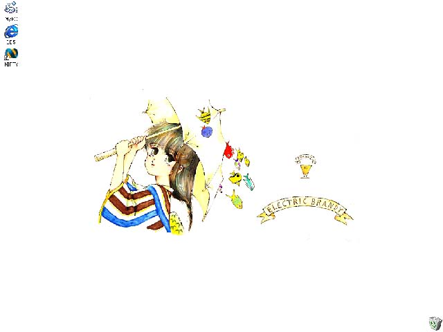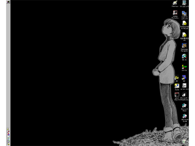 KSRさん | 画像元は(C)PIONEER LDC,INC 須藤真澄の世界「バザール」 って言うCD-ROMからです。 シンプルなデスクトップが好みですので、 デスクトップアイコンは最低限です。 |