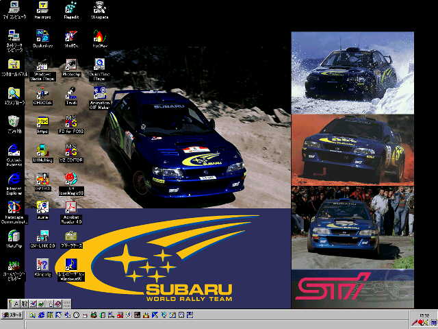 風早彦さん | スバル インプレッサWRCの写真を切り貼りした物です。 壁紙自体は1024×768で256色です。 デスクトップは1152×864の65535色です。 |
