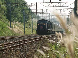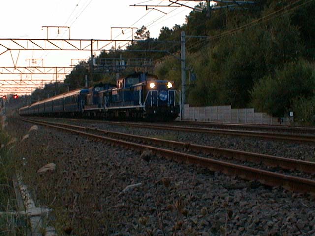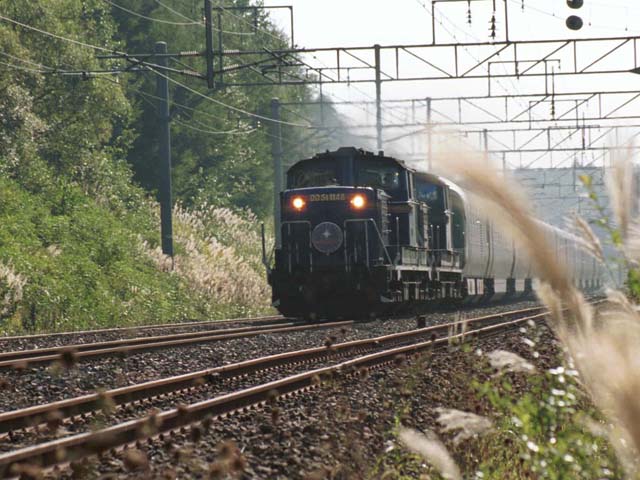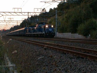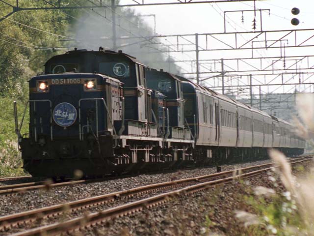 では、その2です。 JR貨物(デジカメ撮影)。コレを撮った頃、雲が出て来て光が足りないのか、画面が暗いです。 北斗星2号(デジカメ撮影)。この写真集のトップのアングルとほぼ同じですが。 カシオペア(フィルム撮影)。 トワイライトエクスプレス(フィルム撮影)。何枚かは、このようにデジカメとフィルムの両方で撮影を行っていた物もあります。 北斗星3号(フィルム撮影)。煙もくもく(笑)。