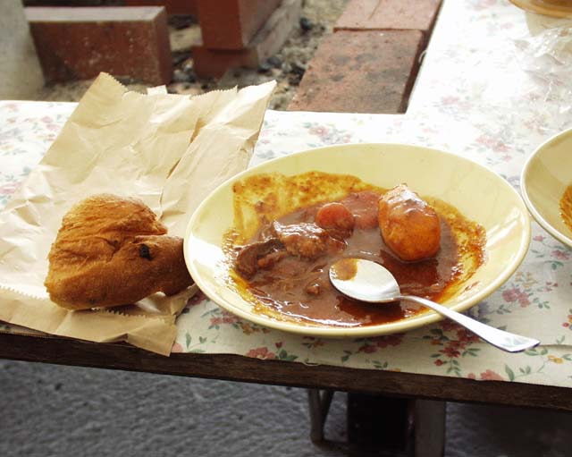 手作りレーズンパン350円、ビーフシチュー500円。味はもう絶品(デジカメ撮影)。