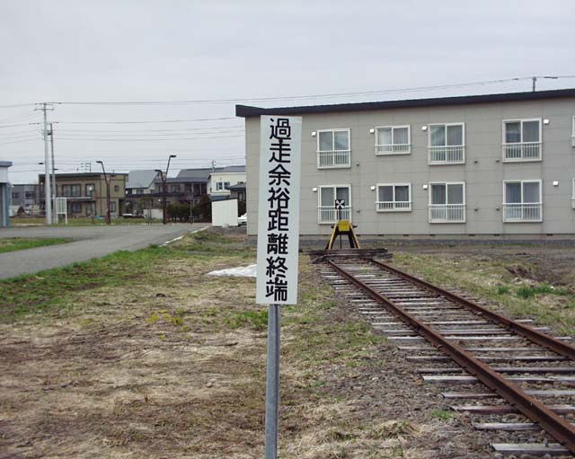 元々札沼線は、留萌線・石狩沼田駅まで路線がありましたが、1972年6月18日に廃止されて居ます。 この、駅から「過走余裕距離終端」までの距離が長いのは、その頃の名残でしょう(右の写真、右上の電柱付近が駅舎)。